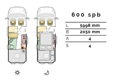 Sports modellerne byder desuden på ekstra sovepladser. Taget kan åbnes til en ekstra sovekabine med en madras på 120 x 200 cm. Her er også fralægningsplads, lys og USB stik. Adgangen sker via en flytbar alu-stige indvendig i kabinen.