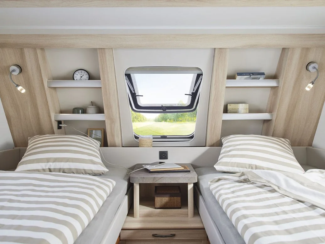 Hobby DE LUXE modellerne har alle komfortable senge med trælameller og springmadrasser i høj kvalitet.