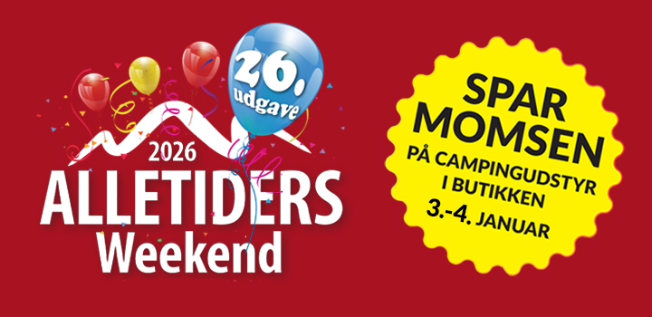 Glæd dig til weekendens køtilbud, Alletiders Weekend tilbud og spar momsen på alt det campingudstyr vi ikke har sat ned i butikken.