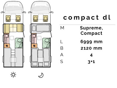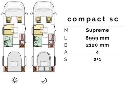 Compact leveres i “Classic White” og Compact Supreme leveres i “Silver Metallic” eksteriørfarver.