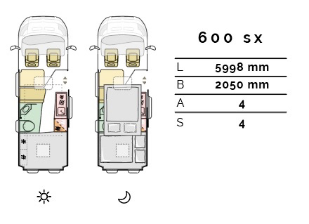 Sports modellerne byder desuden på ekstra sovepladser. Taget kan åbnes til en ekstra sovekabine med en madras på 120 x 200 cm. Her er også fralægningsplads, lys og USB stik. Adgangen sker via en flytbar alu-stige indvendig i kabinen.