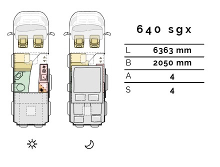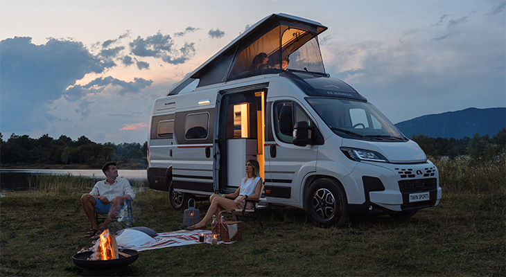 Twin Sports SGX; med eleltrisk hæve-sænke seng bagerst og Pop Top roof "sovekabine" på taget.