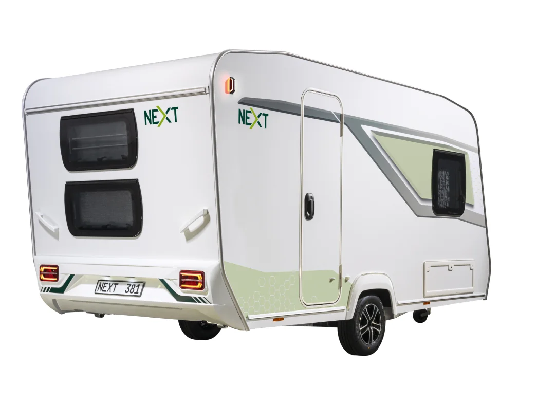 NEXT er en lille effektiv campingvogn skabt til opdagelsesrejsende! Sandwichkonstruktionen med glat plade giver høj stabilitet og lav vægt. Intelligent designet isolering skaber et lunt og hyggeligt klima. Praktiske detaljer såsom den udvendige opbevaringslåge og udvendige el-stik gør dit campingliv lettere. (Tilbehør)