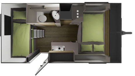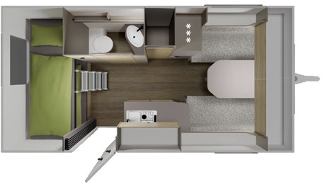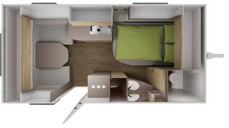 I en NEXT 380 campingvogn er der plads til 3 personer med alt, hvad der er brug for. (4 personer i NEXT 381.) Her er ikke brugt ressourcer på tunge klassiske møbler og gammeldags designløsninger. Alt er forenklet og optimeret, med høj styrke og lav vægt for øje.