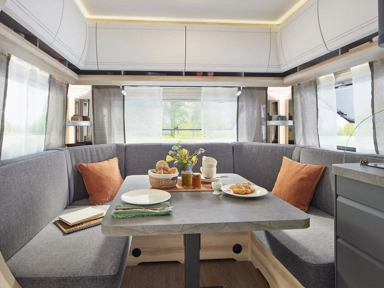 Hobby DE LUXE er rummelig, overskuelig og ikke mindst hyggelig. De Luxe har siddegrupper med god plads til benene og klassisk lyst træ / grå interiør. Som standard er DE LUXE udstyret med lyse tekstiler i et enkelt og roligt design. Alt efter indretning er der bord med metalstel eller søjlebord.