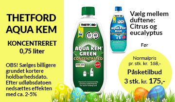 Se på ny campingvogn eller autocamper i påsken. Der er mange nyheder i udstillingen, stort udvalg af brugte vogne og gode tilbud i butikken. Spørg også på et godt bud på 2022-24-modeller fra Adria, Hobby, Eriba, Fendt og Tabbert.