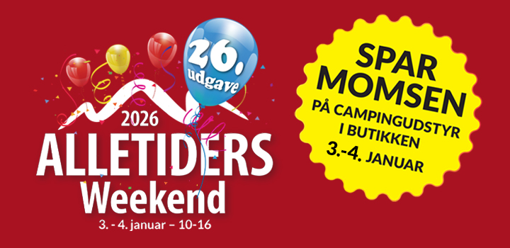 Glæd dig til weekendens køtilbud, Alletiders Weekend tilbud og spar momsen på alt det campingudstyr vi ikke har sat ned i butikken.